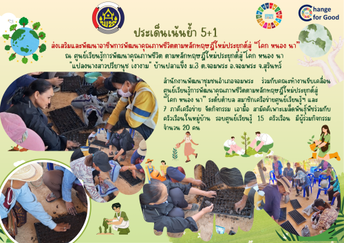 สำนักงานพัฒนาชุมชนอำเภอจอมพระ ร่วมกับคณะทำงานขับเคลื่อนศูนย์เรียนรู้การพัฒนาคุณภาพชีวิตตามหลักทฤษฎีใหม่ประยุกต์สู่ “โคก หนอง นา” ระดับตำบล สมาชิกเครือข่ายศูนย์เรียนรู้ฯ และ